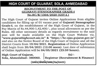 High Court Of Gujarat Recruitment 2021