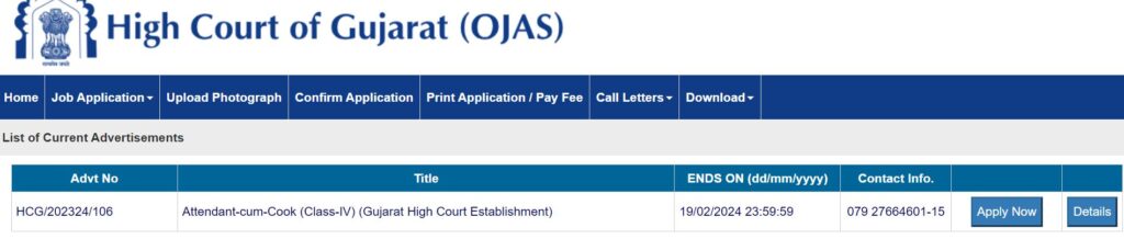 High Court of Gujarat Recruitment for Attendant-cum-Cook Posts 2024