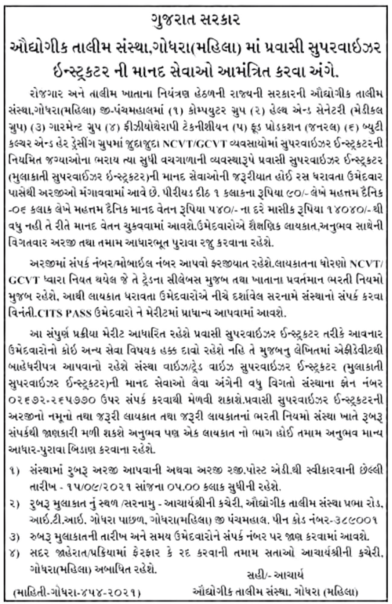 | How to Fill Form We can be notifying You with each and every Notification of ITI Published | ITI Savli:Click here Posts: Pravasi Supervisor Instructor Last Date: 18-09-2021 ITI Godhra:Click here Posts: Pravasi Supervisor Instructor Last Date: 15-09-2021 ITI Gondal:Click here Posts: Pravasi Supervisor Instructor Last Date: 13-09-2021 |