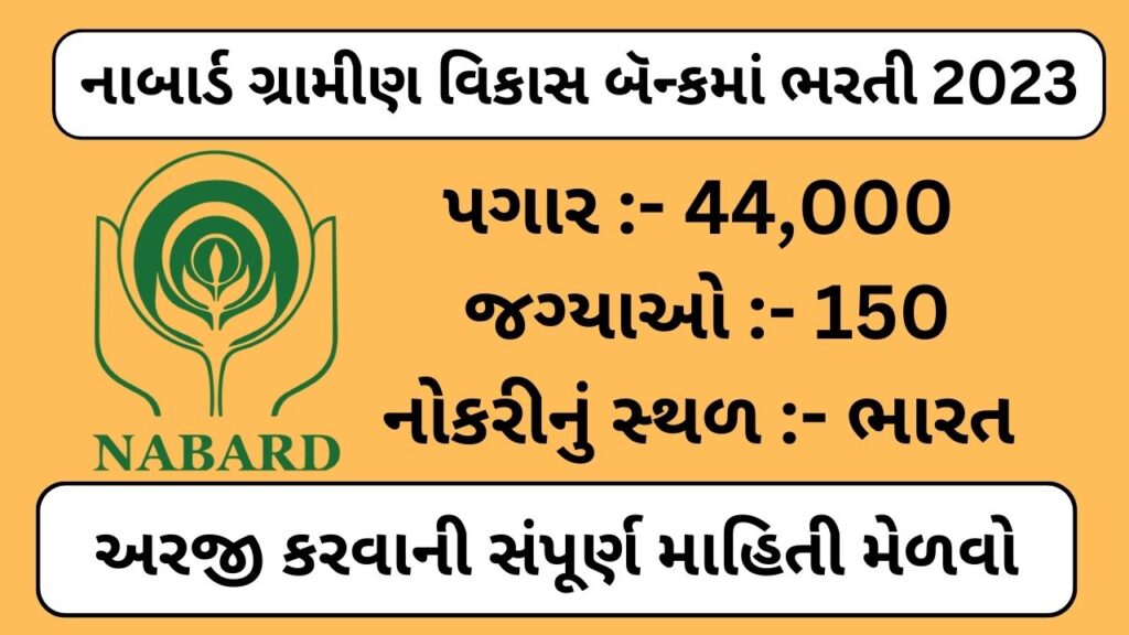 nabard recruitment 2023 :- તો મિત્રો અહી વાત કરીશું કૃષિ અને ગ્રામીણ નેશનલ બઁક દ્વારા અહી ભરતી બહાર પાડવામાં આવી છે. તો મિત્રો આપણે આ ભરતીમાં લાયકાત વિષે તેમજ અરજી કઈ રીતે તેના વિષે સંપૂર્ણ માહિતી મેળવીશું. તો મિત્રો આર્ટીકલ અંત સુધી વાંચજો, અને મિત્રો ને પણ મોકલ જો.