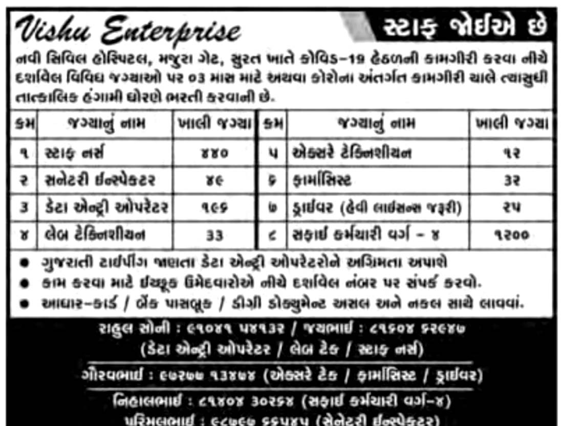 The New Civil Hospital, Surat has stood the test of time and shined through all the adverse conditions and calamities of nature. In the year 1994, when the city of Surat was under the grip of devilish disease of ‘Pneumonic Plague’, this hospital was the only center to serve the needy and helpless people of the community. New Civil Hospital, Surat Recruitment 2021 Job Details: