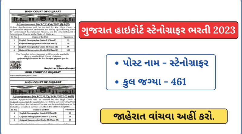 Read MoreHigh Court of Gujarat Recruitment for English Stenographer, Gujarati Stenographer Posts 2023 (HC OJAS) The High Court of Gujarat has