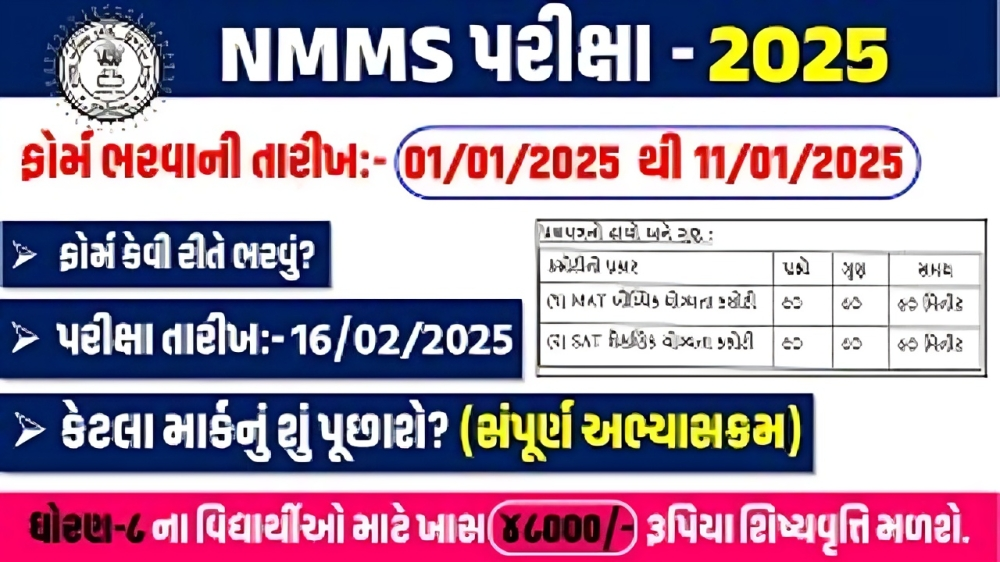 Read MoreNMMS પરીક્ષા જાહેરનામું 2025 ઓનલાઈન એપ્લાય sebexam.org પરીક્ષા અભ્યાસક્રમ, સિલેબ્સ,મેરીટ યાદી રાજ્યમાં નબળી આર્થિક સ્થિતિ ધરાવતાં તેજસ્વી વિદ્યાર્થીઓ ધોરણ-૧૨ સુધી