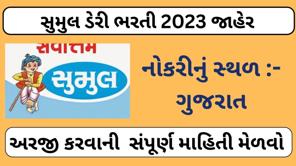 Sumul Dairy Recruitment 2023 :- તો મિત્રો આપણે વાત કરીશું આ આર્ટીકલ માં સુમુલ ડેરી ભરતી વિષે સંપૂર્ણ માહિતી મેળવીશું. અને મિત્રો આ ભરતી માં જગ્યાઓ તેમજ , પગાર અને અરજી કરવાની માહિતી વગેરે આ આર્ટીકલ માં આપણે વાત કરીશું. માટે મિત્રો તમે આ આર્ટીકલ ને અંત સુધી વાંચજો. અને તમારા મિત્રો ને મોકલ જો.