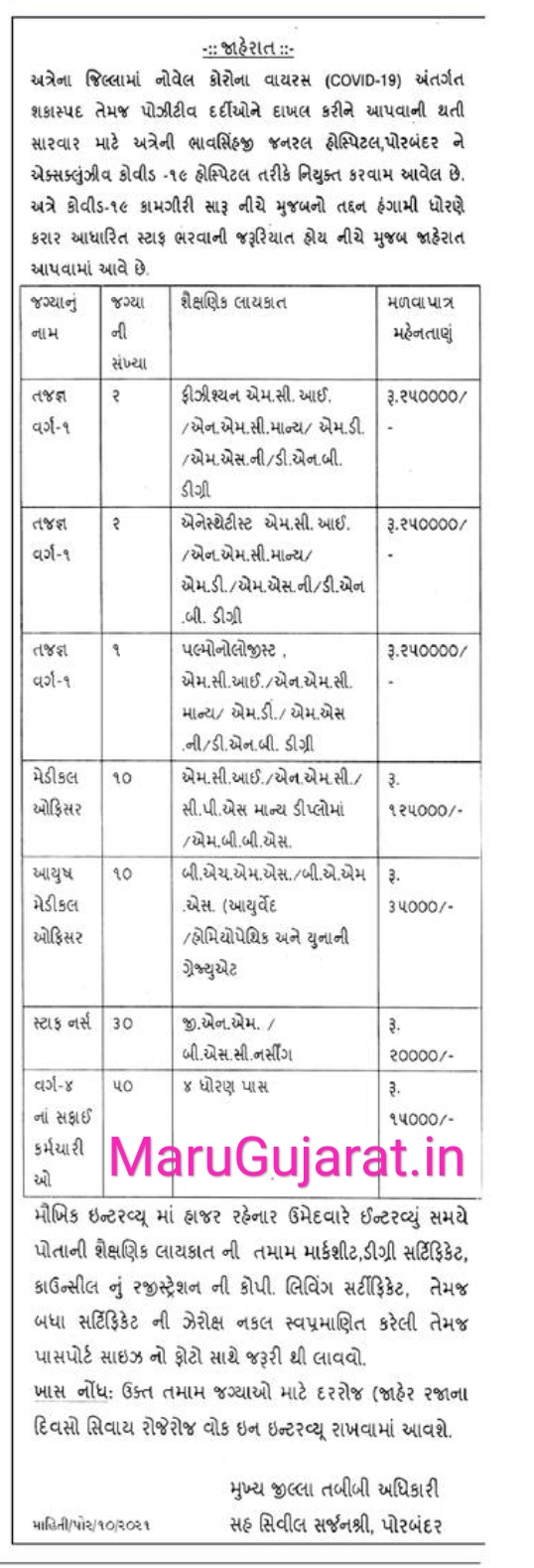 Bhavsinhji General Hospital, Porbandar- Until The Requirement Is Filled | SpecialistMedical OfficerAyush Medical OfficerStaff NurseClass – 4 | Click Here |