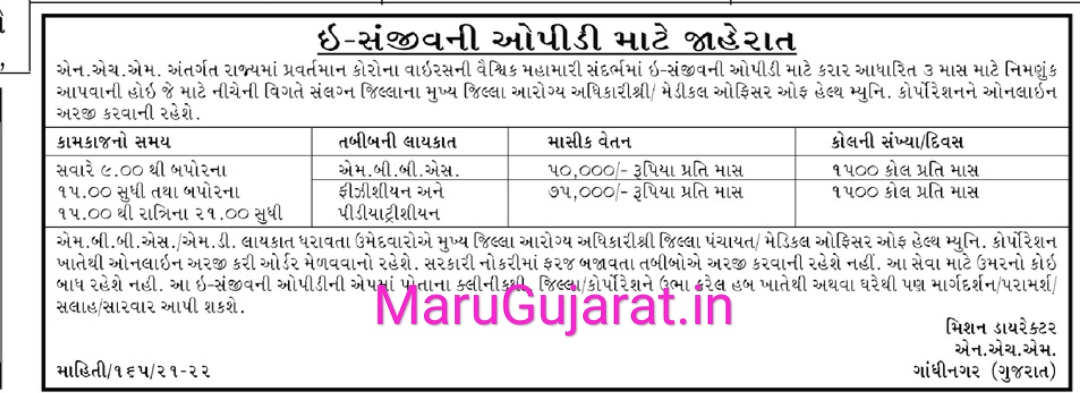 NHM Gandhinagar (e-Sanjivani OPD)- Until The Requirement Is Filled | MBBS Medical OfficerPediatrician | Click Here |