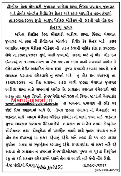 District Health Society, Junagadh- 13-05-2021 | Ayush Medical Officer | Click Here |