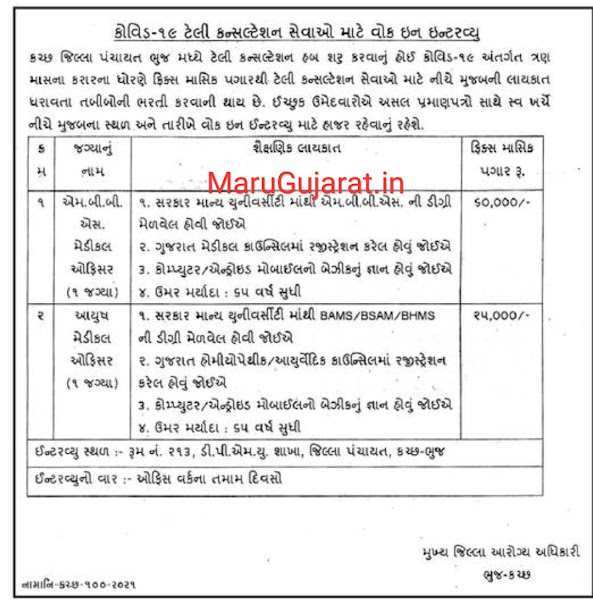 District Panchayat Bhuj- Until The Requirement Is Filled | MBBS Medical Officer Ayush Medical Officer | Click Here |